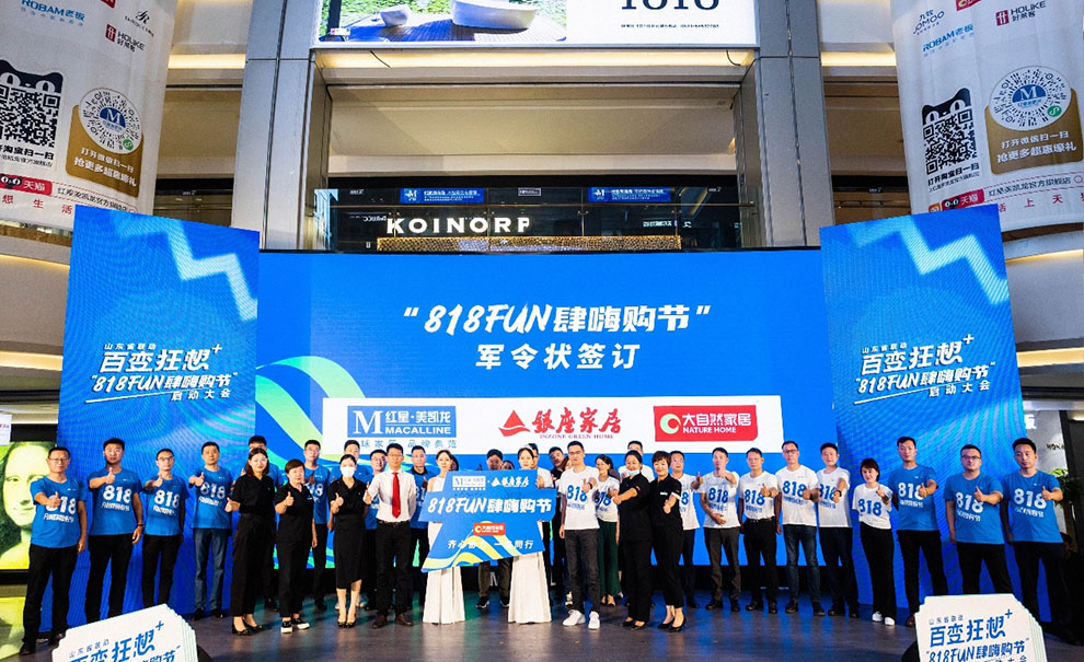 (圖為7月21日,山東濟(jì)南,紅星與大自然家居舉行818FUN肆嗨購(gòu)節(jié)軍令狀簽訂儀式)